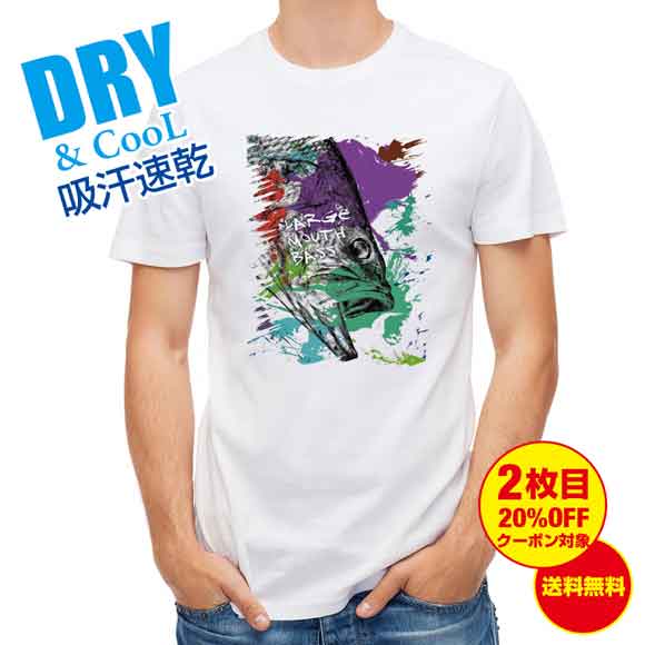 おもしろ Tシャツ ブラックバス2 ペンキペイント 釣り 魚 ルアー T シャツ メンズ 半袖 ロゴ 文字 春 夏 秋 インナー 安い 面白い 大きいサイズ 洗濯 ポリエステル お中元 送料無料