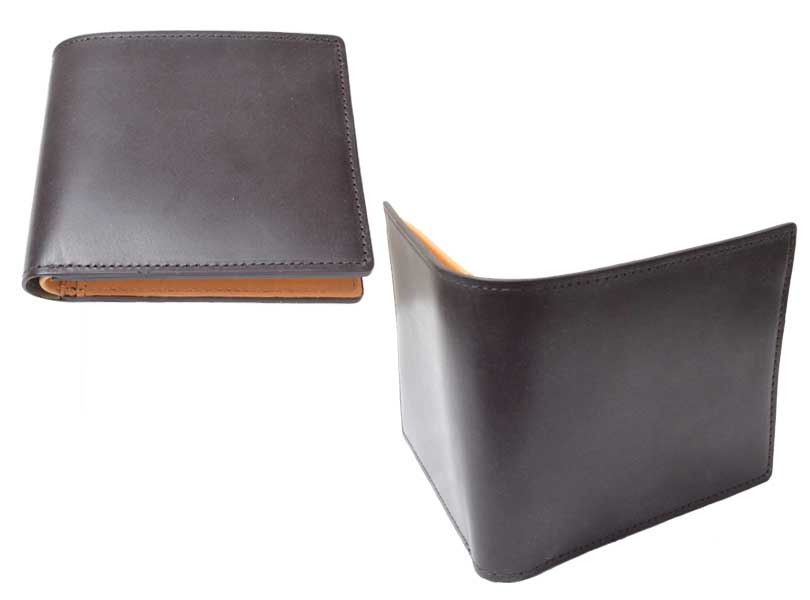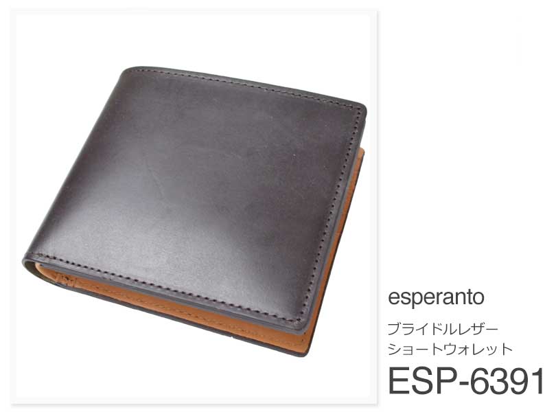 エスペラントのレザーウォレット 「ブライドルレザーショートウォレット」 MADE IN JAPAN 表側に英国"クレイトン社"の きめの細かい繊維質が特徴、表面は薄っすらブルームに覆われ独特のブラッシング跡が残る 最上級部位であるベンズ部位(背中からお尻にかけての部分)を使用、 イタリア、cuoificio M.P.G社の上質なヌメ革を内装に使用し、 裏地部分には国産の牛革を使用したオールレザーの二つ折りの財布 小銭入れはあえて装備せず、 シンプルでスマートに札入れとカード入れのみの作り。