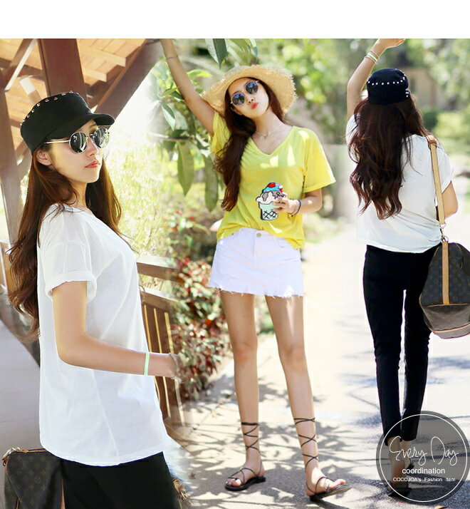 深いVネックラインで小顔効果バツグンなカジュアルカットソーです。
