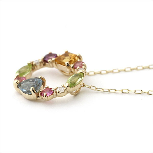 K10/K18 マルチカラー ダイヤモンド ネックレス/ネックレス/ペンダント/ピンクトルマリン/アメシスト/シトリン/ブルートパーズ/ペリドット/ダイヤモンド/ダイヤ/4月誕生石/マルチカラー/トルマリン/トパーズ/レディース/記念日/プレゼント/マルチ/楽ギフ_包装