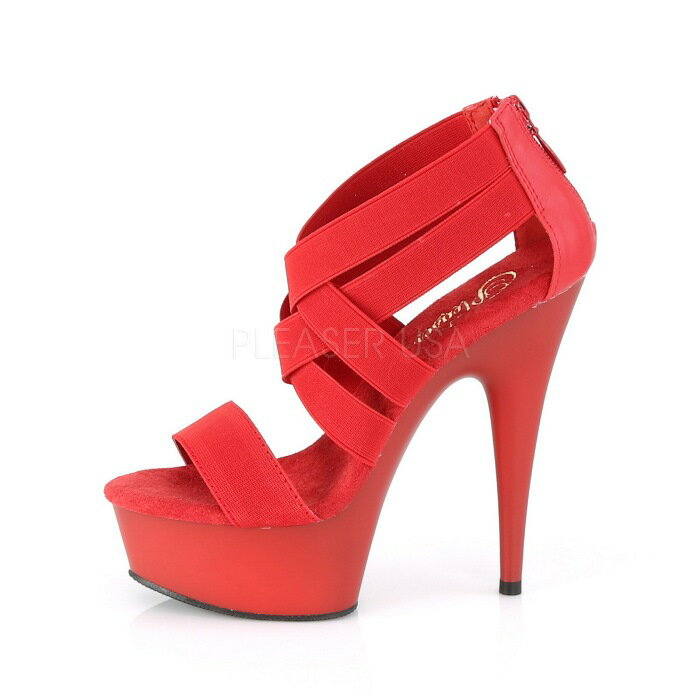 PLEASER プリーザー サンダル 15cm センチ ヒール 赤 レッド ブーツサンダル ブーティサンダル レディース ゴム バンド アンクル ストラップ アッパー かかと バック ファスナー ジッパー 厚底 ハイヒール ピンヒール 大きいサイズ 靴 DELIGHT-669 DEL669/RELS-PU/M 取寄