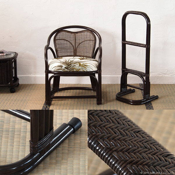 ラタン つかまり立ち CB ダークブラウン 籐家具 ステッキ つかまり 立ち上がり 補助 介護 籐 和室 玄関 寝室 アジアン 和風 腰 支える つかまり棒 ギフト 敬老の日(代引不可)【送料無料】