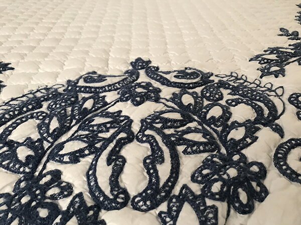 手洗いOKの大人かっこいい北欧風の刺繍キルトマルチカバーです。